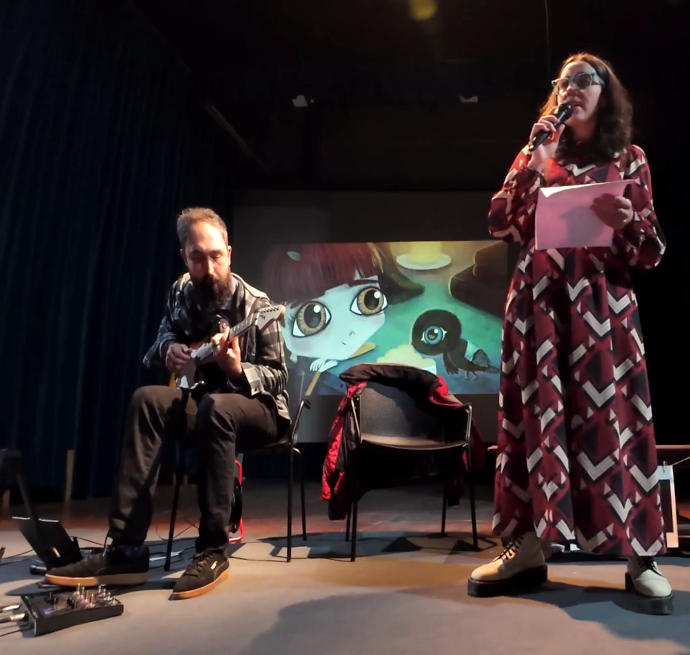 O acto comezou por explicar o método de financiamento colectiva que se está a usar para poder sacar o proxecto adiante, que pola súa novidade confundiu a parte dos seguidores das artistas. Logo, deuse paso a Lucía Ferro e Andrea Lombardía, que xunto co mantedor do acto, tiveron un diálogo sobre os temas tratados e como afectan ás vidas persoais das autoras. Logo disto, Lucía recitou os versos que compoñen o libro para tratar de evocar nos asistentes unhas sensacións semellantes ás que poderán experimentar unha vez lean a obra finalizada, acompañada á guitarra polo presentador.