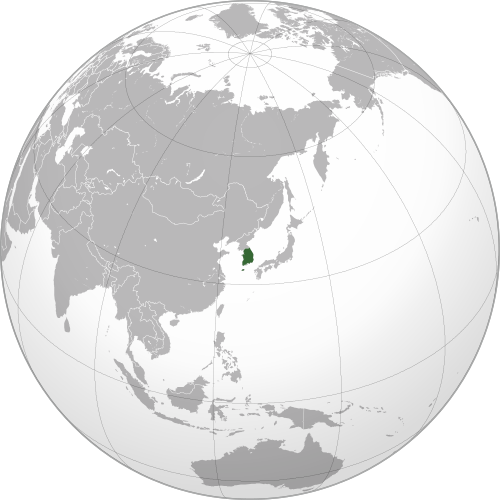 Corea do Sur no mundo. CCBYSA3.0 por Ksiom en https://commons.wikimedia.org/wiki/File:South_Korea_(orthographic_projection).svg