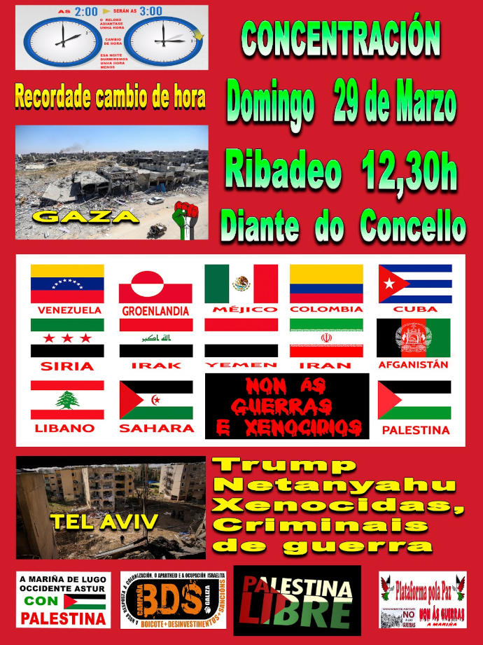 Un novo domingo, este, o domingo de Ramos de 2026, teremos unha nova concentración pola paz. En Ribadeo, diante do concello, ás 12:30.