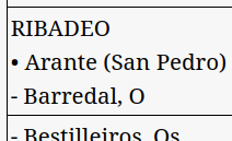 | • Devesa, A (Santalla) – Avesada, A |